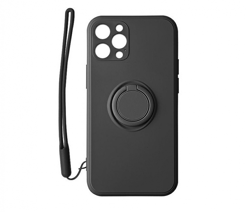 Samsung Galaxy A37 Gyűrűs Bársony szilikon tok, fekete